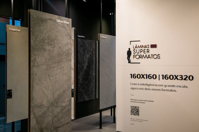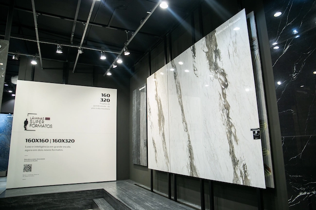 Entre os lançamentos e tendências apresentados neste ano na Expo Revestir, os grandes formatos surpreenderam com peças que superam os 3 metros.